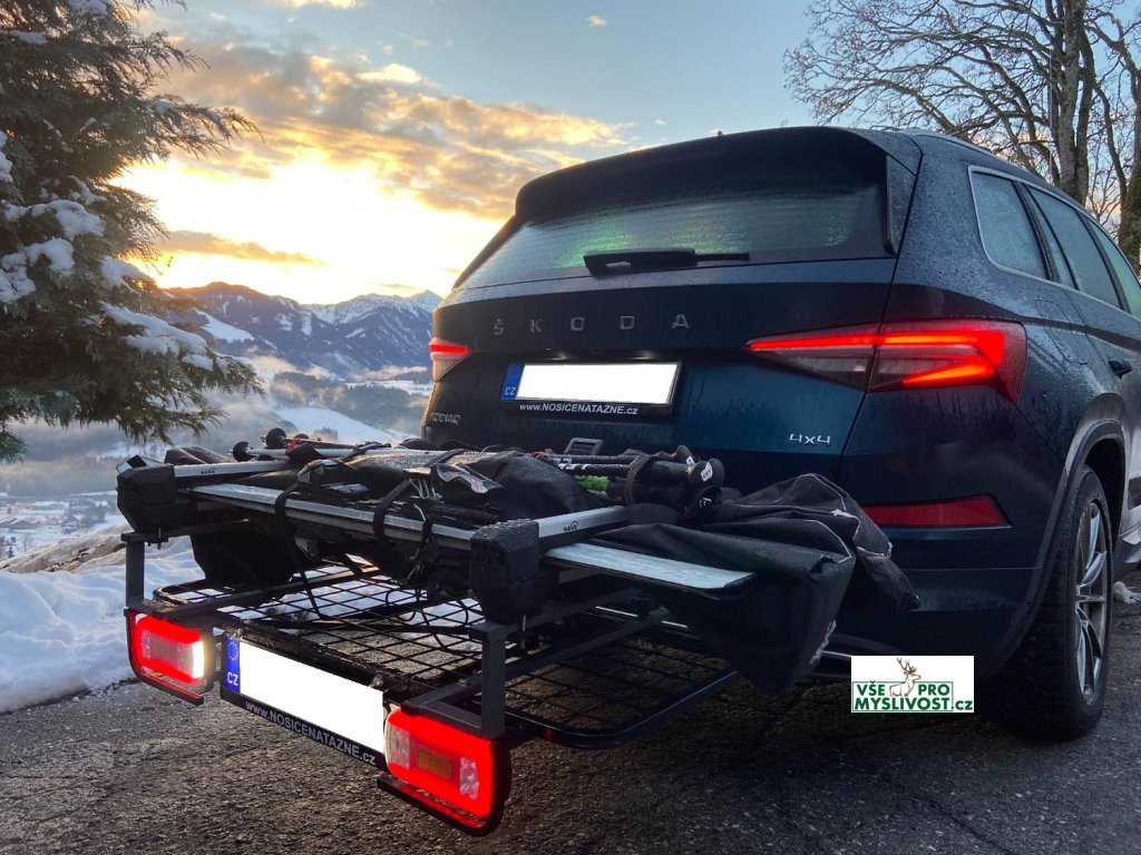 Adaptér na převoz čtyř párů lyží, nebo dvou snowboardů na univerzálním zadním AM nosiči - univerzální platformě (PLT2).