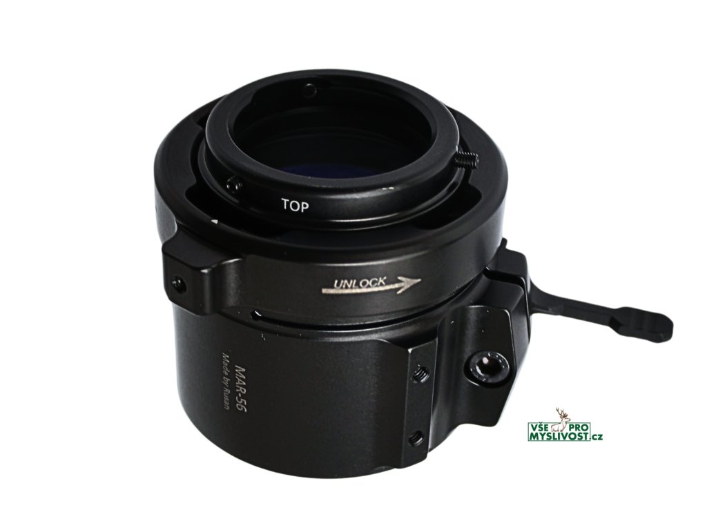 Jednoduché nasazení spočívá v upevnění objímky na puškohled a otočením předsádky s nasazeným redukčním kroužkem (konektorem). Pomocí chytré funkce zamknutí předsádku upevníte na místě. Sundání je pak naprostou hračkou! Objímku můžete nechat pohodlně připevněnou na puškohledu, zatímco otočením odemknete a sejmete přístroj s redukcí.