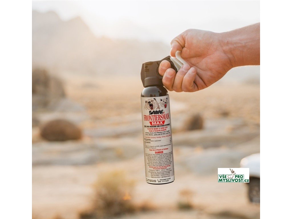 • sprej FRONTIERSMAN Sabre Bear je nejúčinnější pepřový sprej určený k obraně proti medvědům obsahující velmi silnou koncentraci dráždivých látek