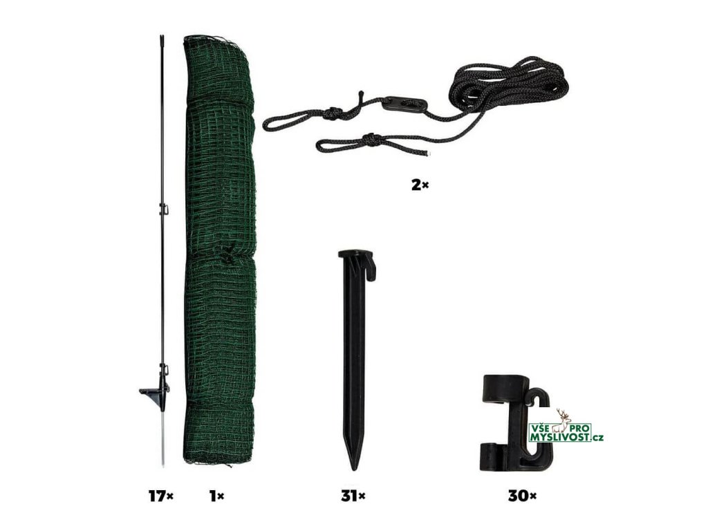 - 1× zelená univerzální ohradníková síť FLEX, nevodivá, s délkou 25 m a výškou 90 cm