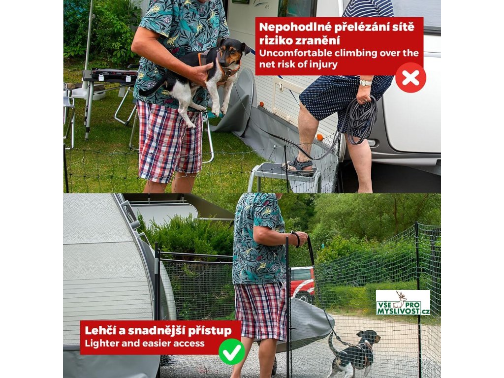 Kempingová sada ideální pro cestování. Poslouží jako mobilní plot pro psy a vymezení bezpečného prostoru kdekoliv potřebujete. Zároveň je velmi oblíbenou alternativou klasického oplocení na zahradách pro ochranu záhonů nebo jako přenosný výběh pro štěňata či jiná drobná domácí zvířátka.
