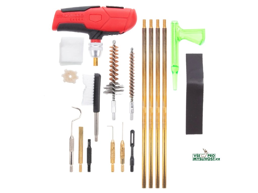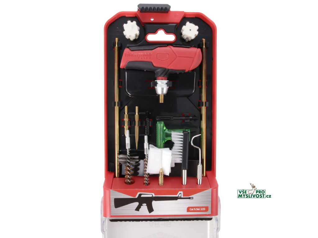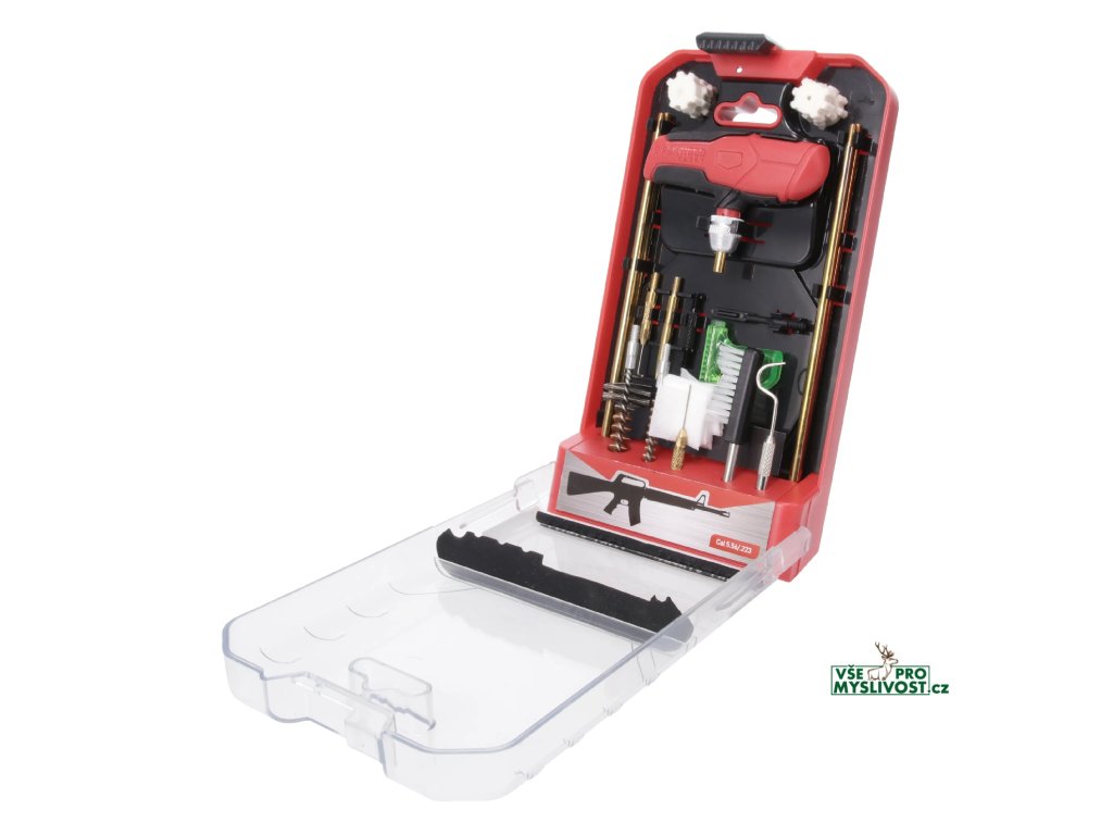- Speciální uzamykatelná rukojeť - 4dílná mosazná čisticí tyč - 1 hvězdicový kartáč na čištění komory - 1 kartáč na vývrt (ráže 5,56/.223) - 1 kartáč na nosič závorníku se závity - 1 nylonová drážkovaná špička - 1 ocelový čisticí háček se závitem - 3v1 osvětlovač vývrtu / vyrážeč kolíků / bezpečnostní vlaječka - 6 vlněných čisticích tamponů na hvězdicovou komoru - 50 čisticích hadříků o rozměru 3,8 x 3,8 cm - 1 konektor pro čisticí tampony na hvězdicovou komoru - 1 rovný háček se závitem - 1 háček zahnutý v úhlu 90° se závitem - 1 škrabka se závitem - 1 samolepicí magnetický pásek - Přenosná krabička s výklopným stojánkem (víko krabičky slouží jako přihrádka na díly)
