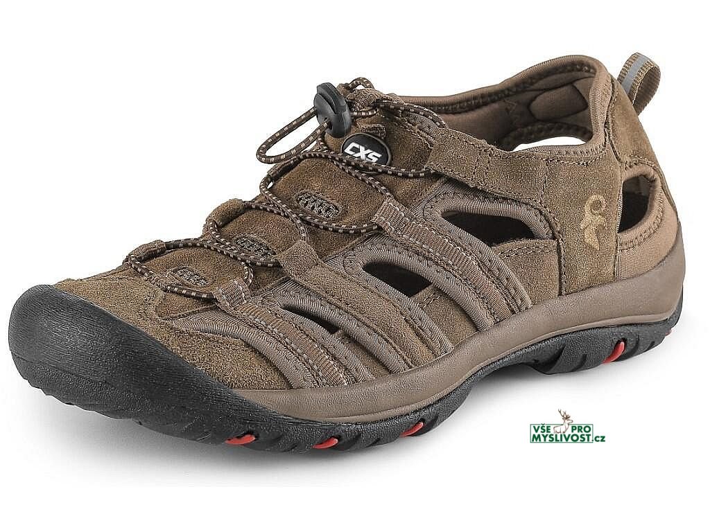 Volnočasový sandál s průduchy po stranách pro lepší odvětrávání, možnost stažení stahovací gumičkou, reflexní doplňky. Materiál: svršek z hovězinové kůže s textilními doplňky, textilní podšívka, podešev: phylon/guma.