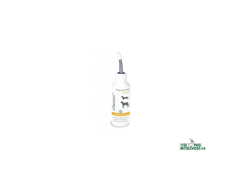 Šetrný a účinný přípravek pro oplachování předkožky u psů Sanocyn Forte obsahující aktivní chlor uvolněný z kyseliny chlorné (HOCl). Rozpouští a odstraňuje odumřelé buňky, sekrece sliznic, zbytky moči a jiné nečistoty. Přípravek je vysoce účinný (99.99%) proti běžně se vyskytujícím bakteriím, virům a plísním. Je zcela bezpečný, má neutrální pH, neštípe ani nezpůsobuje podráždění, neobsahuje Chlorhexidin.