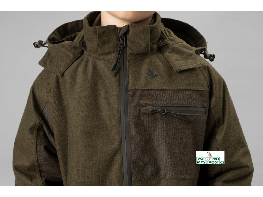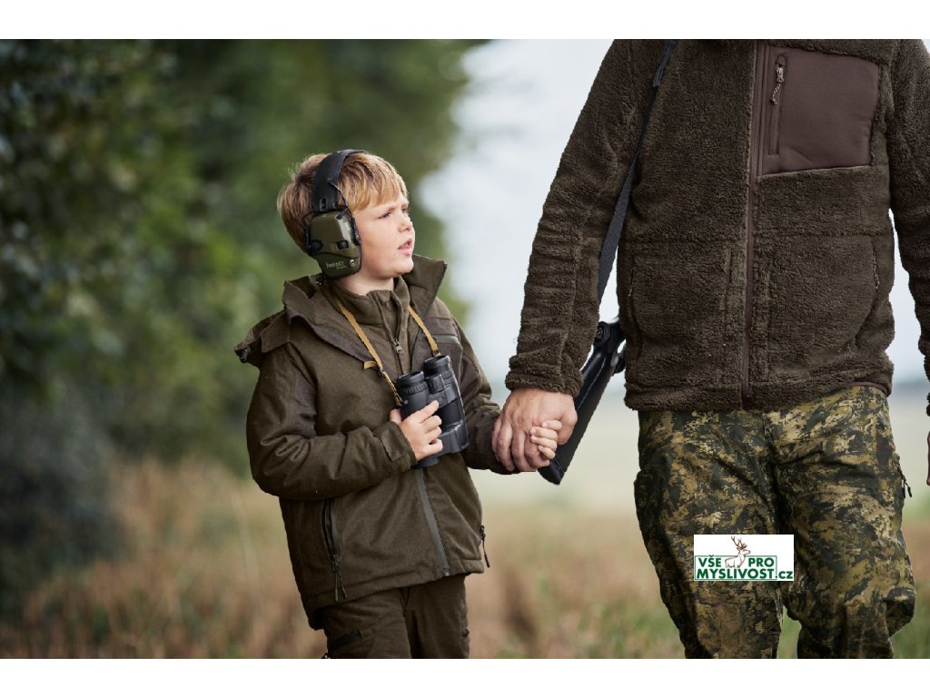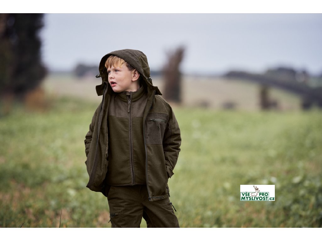 odepínatelnou kapuci a přiloženou bezpečnostní vestu pro mladé dobrodruhy.