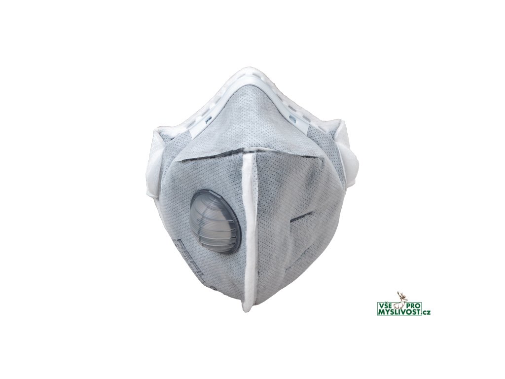 skládací respirátor s výdechovým ventilem a vrstvou aktivního uhlí do 12x NPK/PEL; chrání proti pevným částicím a kapalným aerosolům, proti parám, plynům a ozonu pod NPK; filtrační třída FFP2 NR