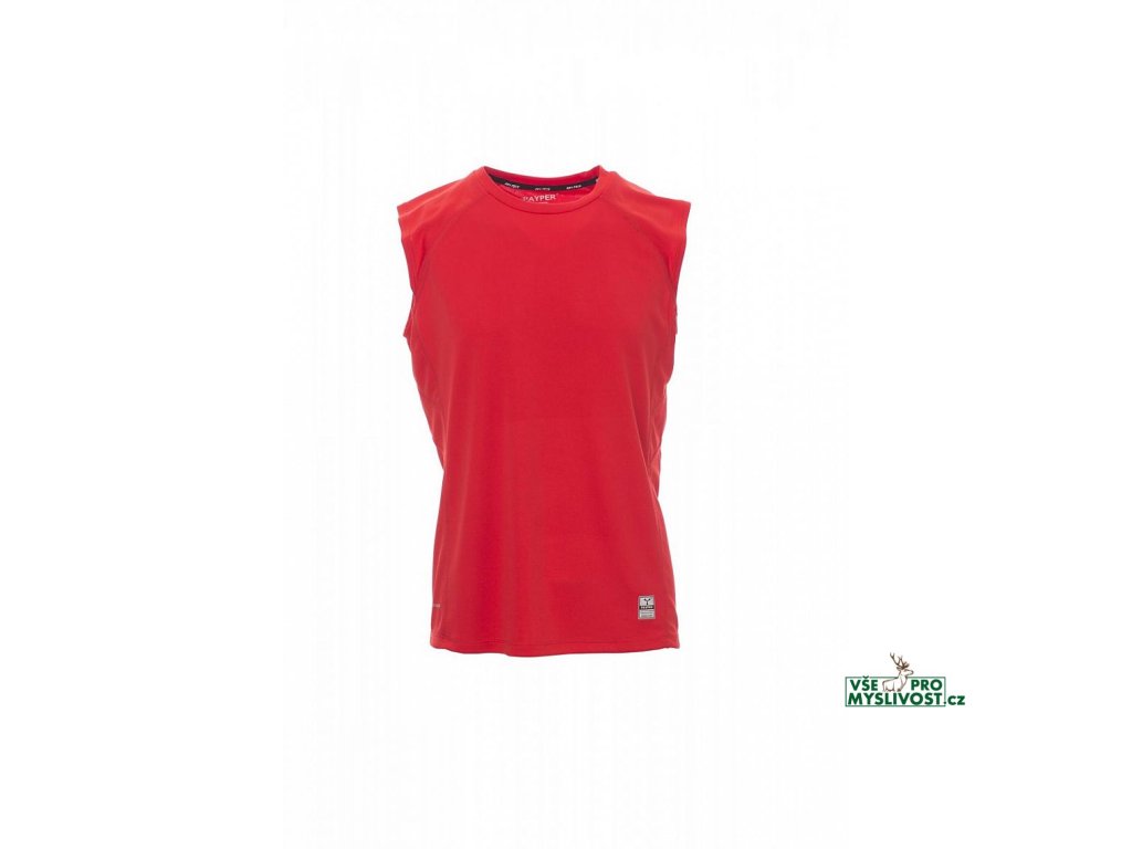 Pánské technicko-sportovní tílko s raglánovými rukávy, dvojité postranní švy pro pohodlnější nošení, zúžený tvarovaný spodní okraj a prodloužená zadní strana, reflexní vložky na spodní straně límečku, kontrastní páska kolem krku, nažehlovací etiketa.
