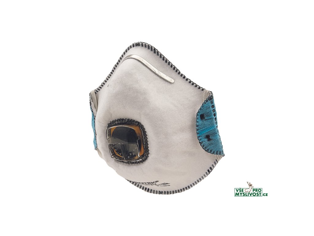 respirátor s ventilkem TyphoonTM a vrstvou aktivního uhlí proti netoxickým pevným částicím a kapalným aerosolům v koncentracích do 12x NPK/PEL; ochrana proti kyselým plynům a organickým párám pod NKP; EN 149:2001+A12009; GOCT P 12.4.191-99, TP TC 019/2011; balení obsahuje 10 kusů