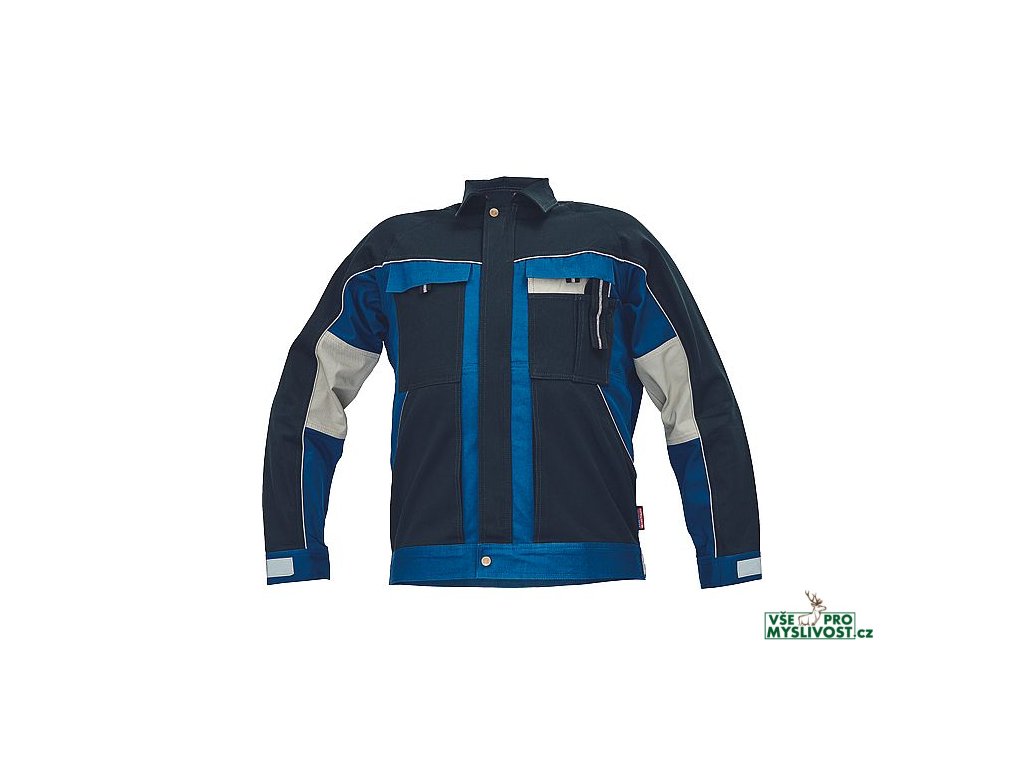 • pracovní bunda vysoké odolnosti se zapínáním na zip kryté légou na kovové druky • 2 velké přední kapsy • 2 náprsní kapsy s klopami na suchý zip • nastavitelná šíře rukávů pomocí druků • spodní polohovací lem na druky • reflexní prvky