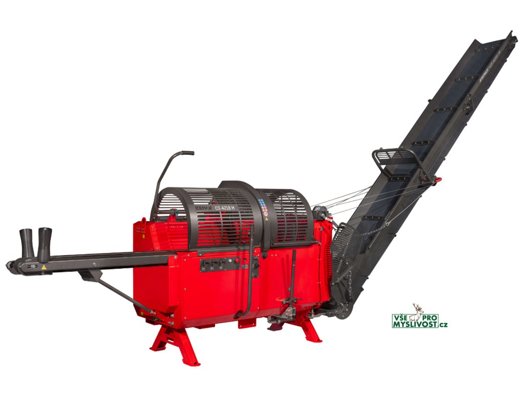 Základní model štípacího automatu Vitli KRPAN CS 4218M s jednoduchým mechanickým ovládáním pro přípravu palivového dříví. Automat je vybaven funkcí Speed Automatic, která přepíná rychlost štípání podle zatížení štípacího klínu. Automat krátí kulatinu o průměru 10 - 42 cm pomocí lišty s pilovým řetězem na délky 20 až 50 cm. Výkonná hydraulika s trojitým litinovým čerpadlem má zásobník hydraulického oleje s obsahem 100 l, což zabraňuje přehřátí v horkém letním počasí i při plné zátěži.Štípací automat je vybaven:pákou pro ruční zapnutí - vypnutí štípáníovládací pákou pro automatický cyklusmechanismem k posunu dopravníku vlevo-vpravoteleskopickým pásovým dopravníkem délky 5 m s mechanickým posunem a s plynulou regulací rychlostichladičem oleje s velkou olejovou nádrží o obsahu 100 l hydraulického olejekardanovou hřídelí Walterscheid W 2300 SD 15štípacím 4-dílným křížempočítadlem motohodinK automatu lze doobjednat:6-dílný, 8-dílný nebo 12-dílný štípací křížodsavač pilin KRPAN SE s hydraulickým nebo elektrickým pohonemseparátoralternativní elektropohon MP20kola pro snazší přepravuNávod k obsluze Katalog náhradních dílů