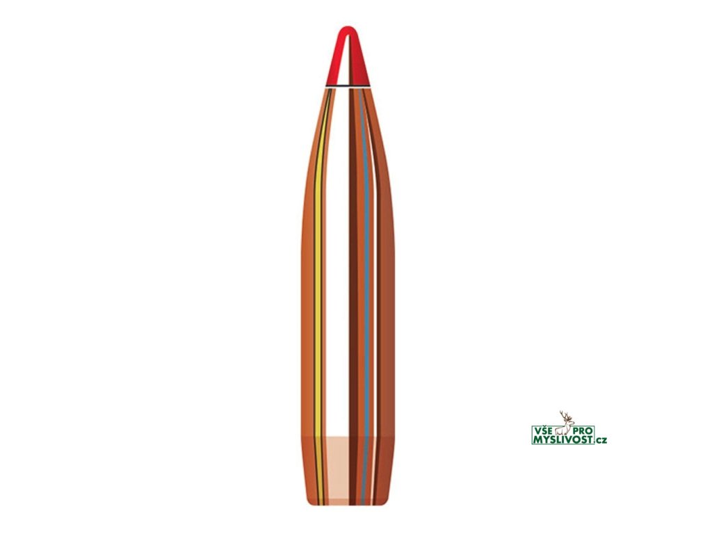 Konstrukce střely Hornady A-MAX vznikla z neúnavného uplatňování všeho, co víme o balistice a letových vlastnostech. Závodní střelci totiž vyžadují dokonalost od svých nábojů pokaždé, když vstoupí na střelnici. Aerodynamický ogivální profil, ostrá špička a nepřekonatelná soustřednost designu A-MAX mu dávají extrémně vysoký balistický koeficient pro téměř dokonalost v letu. Střela A-MAX je konečným výsledkem více než půlstoletí studia výkonnosti střely. Každý aspekt přesnosti byl vložen do střely A-MAX. Od jeho polymerové špičky až po úhel základny je střela A-MAX navržena pro extrémní přesnost.