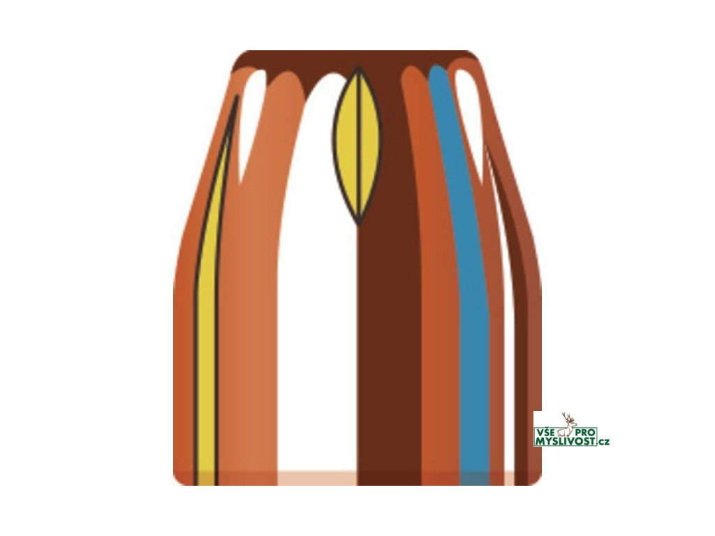 Plášť chrání špičku střely, aby dutina při nárazu správně fungovala, zatímco rovnoměrná hustota jádra zajišťuje vyváženou expanzi a stabilitu za letu.