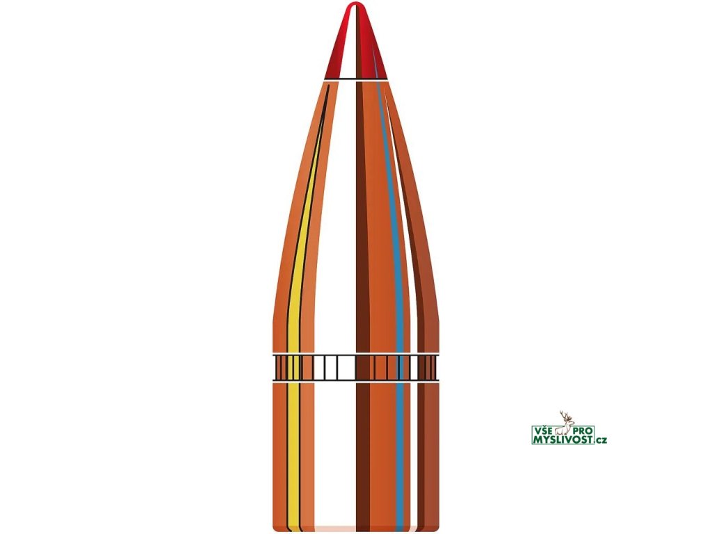 Tvrdá, elegantní polymerová špička zvyšuje aerodynamickou účinnost a při zásahu zajíždí do olověného jádra jako klín, čímž iniciuje rychlou, ale řízenou expanzi.