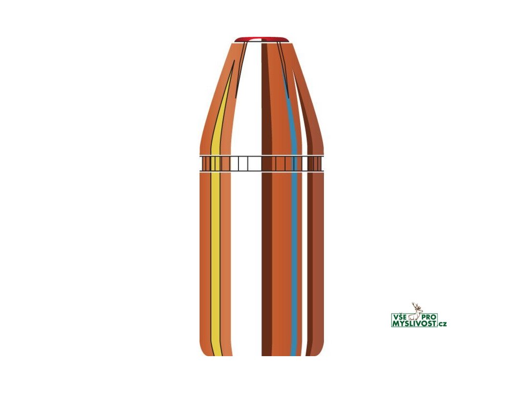 Kroužek InterLock udržuje plášť střely a olověné jádro pohromadě během expanze pro hlubokou penetraci, zachování nejméně 90 % hmotnosti a konzistentní výsledky.