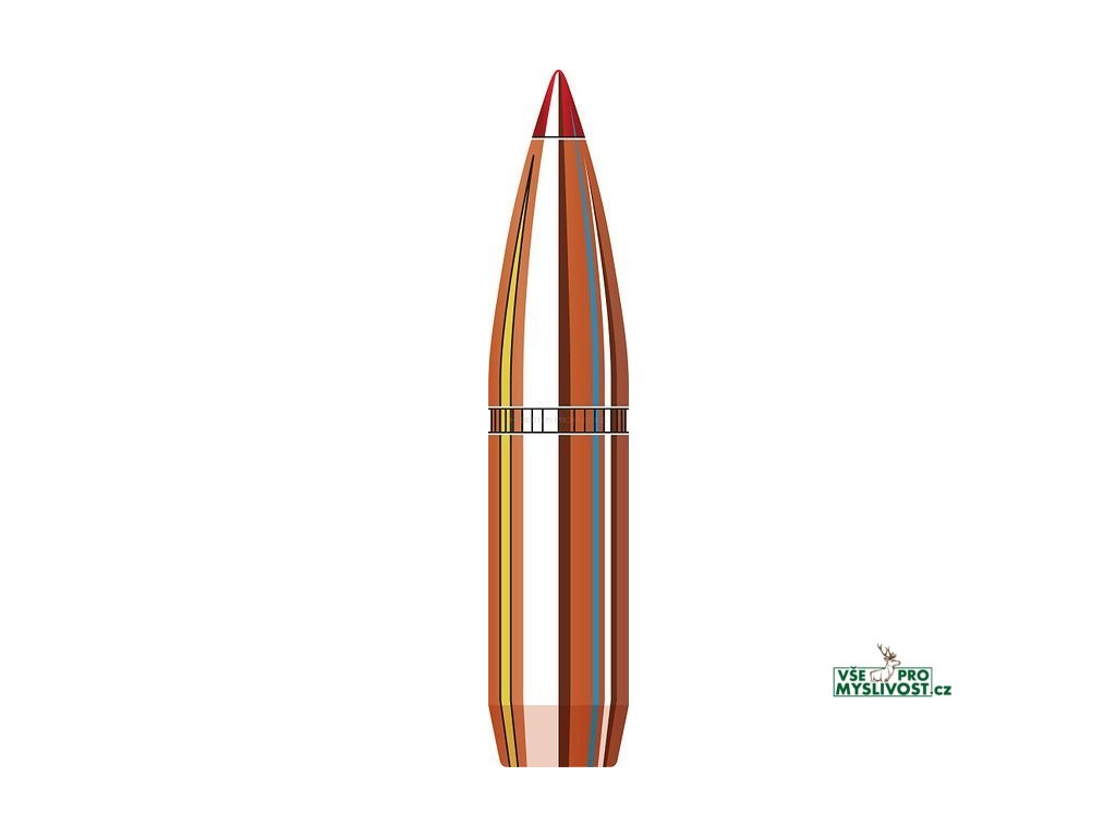 Tvrdá, elegantní polymerová špička zvyšuje aerodynamickou účinnost a při zásahu zajíždí do olověného jádra jako klín, čímž iniciuje rychlou, ale řízenou expanzi.