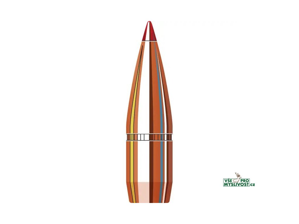 Tvrdá, elegantní polymerová špička zvyšuje aerodynamickou účinnost a při zásahu zajíždí do olověného jádra jako klín, čímž iniciuje rychlou, ale řízenou expanzi.