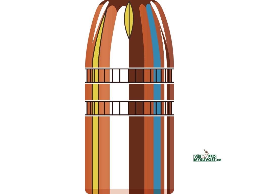 Plášť chrání špičku střely, aby dutina při nárazu správně fungovala, zatímco rovnoměrná hustota jádra zajišťuje vyváženou expanzi a stabilitu za letu.