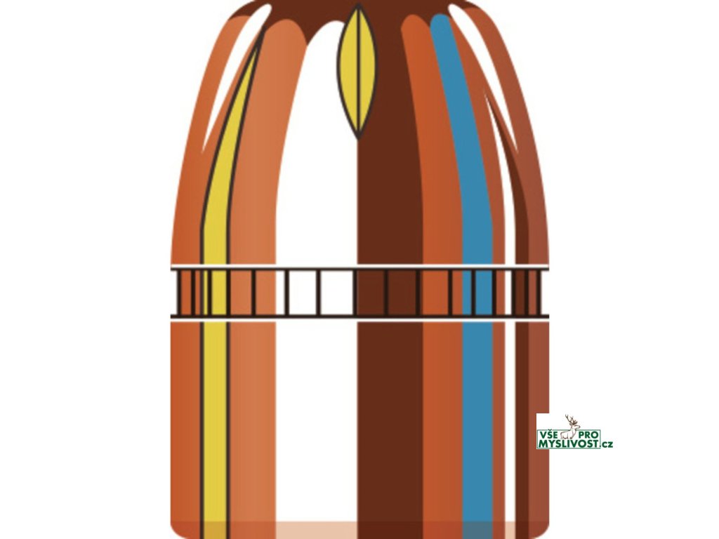 Plášť chrání špičku střely, aby dutina při nárazu správně fungovala, zatímco rovnoměrná hustota jádra zajišťuje vyváženou expanzi a stabilitu za letu.