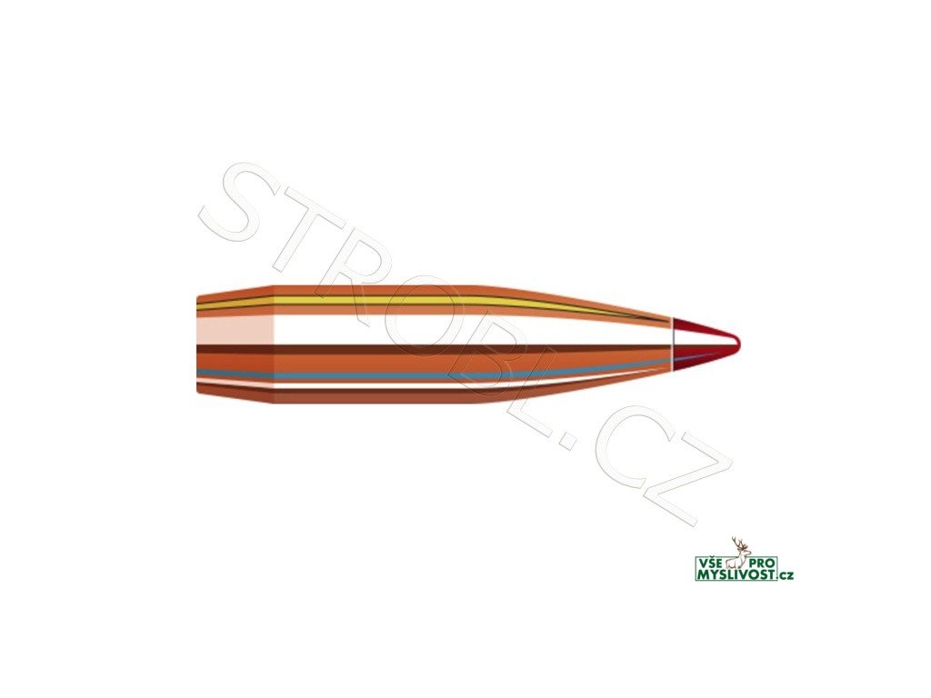 Vnější plášť je spojen s olověným jádrem technologií InterLock® a střela si tak i při vysokých dopadových rychlostech (800 m/s) zachováná 50-60% své hmotnosti. Při nižších dopadových rychlostech (550 m/s) oceníte další funkci plastové špičky, která se zasune do jádra střely a zajistí tak velmi spolehlivou expanzi s retencí až 90% hmotnosti.