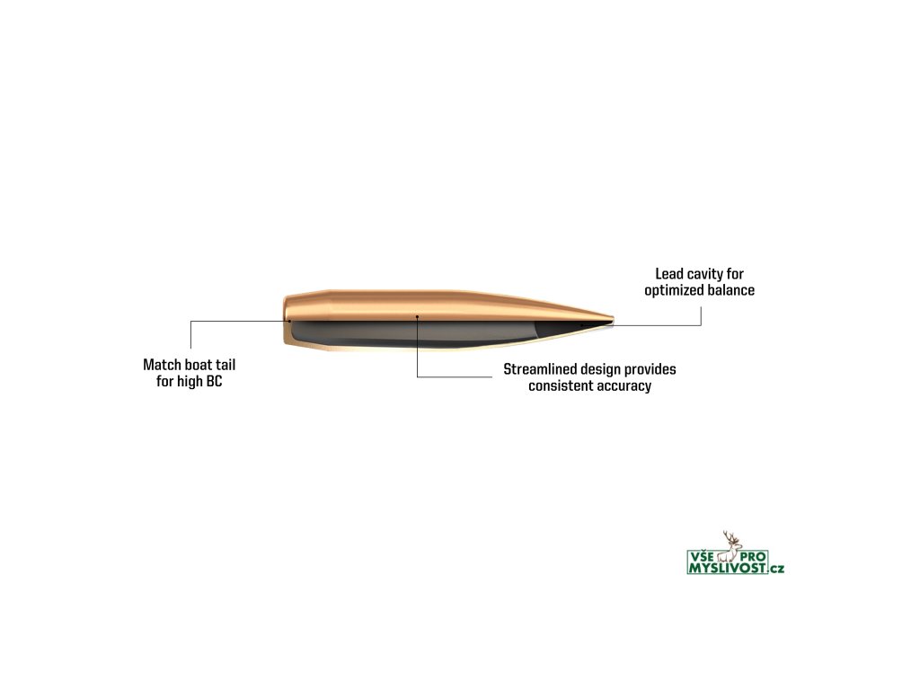 - Vysoký balistický koeficient pro špičkovou přesnost ve všech oblastech sportovní střelby