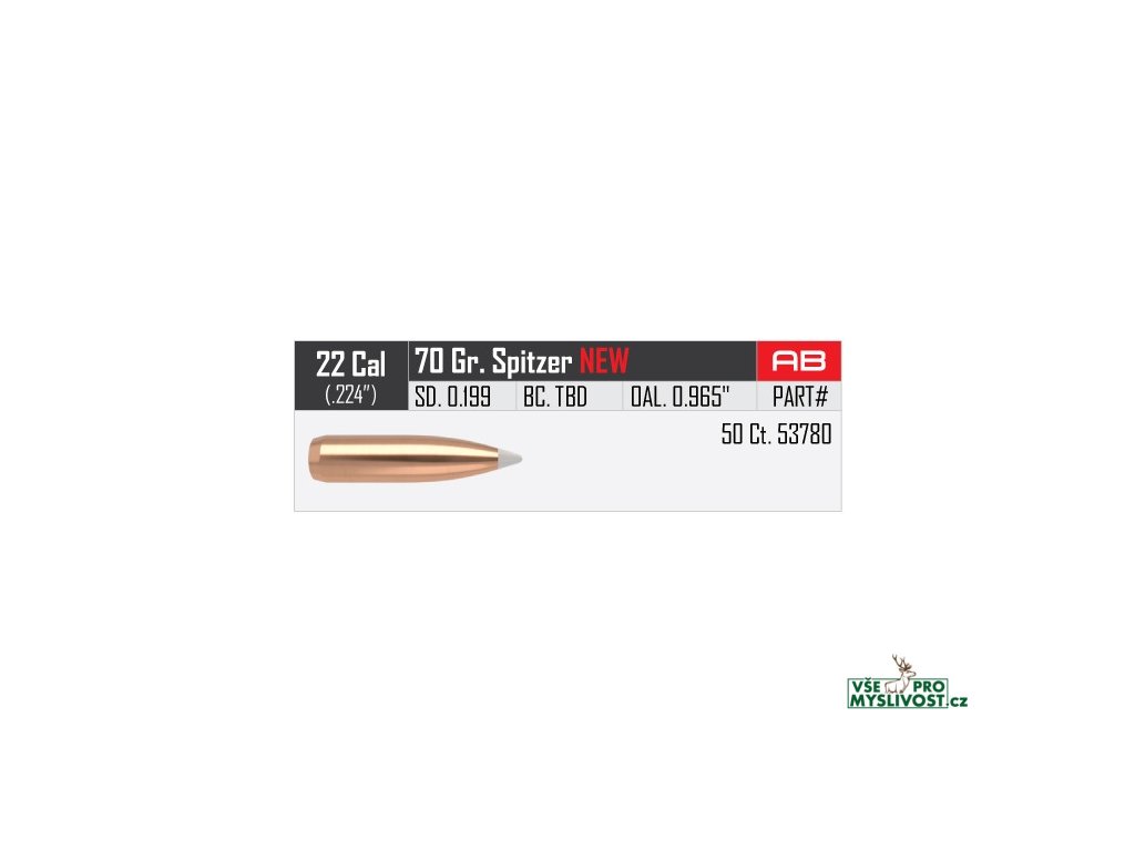 Střely Nosler AccuBond .22 cal, dia .224, 70grs (4,5g). SKU: 53780