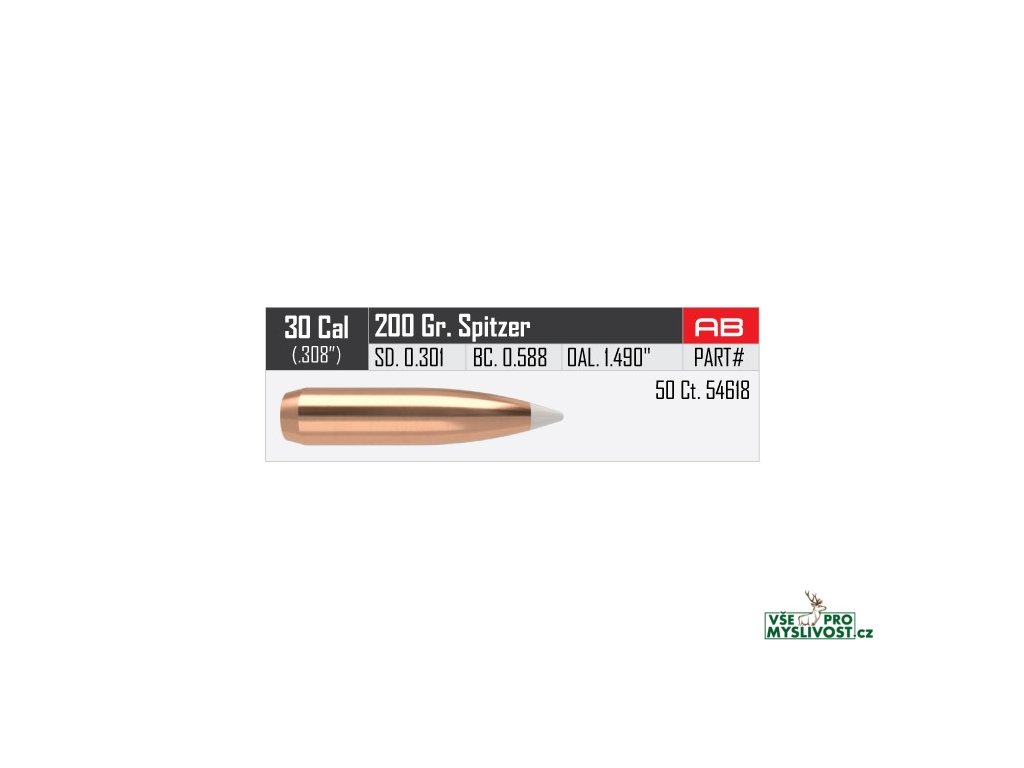 Střely Nosler AccuBond .30 cal, dia .308, 200grs (13g). SKU: 54618