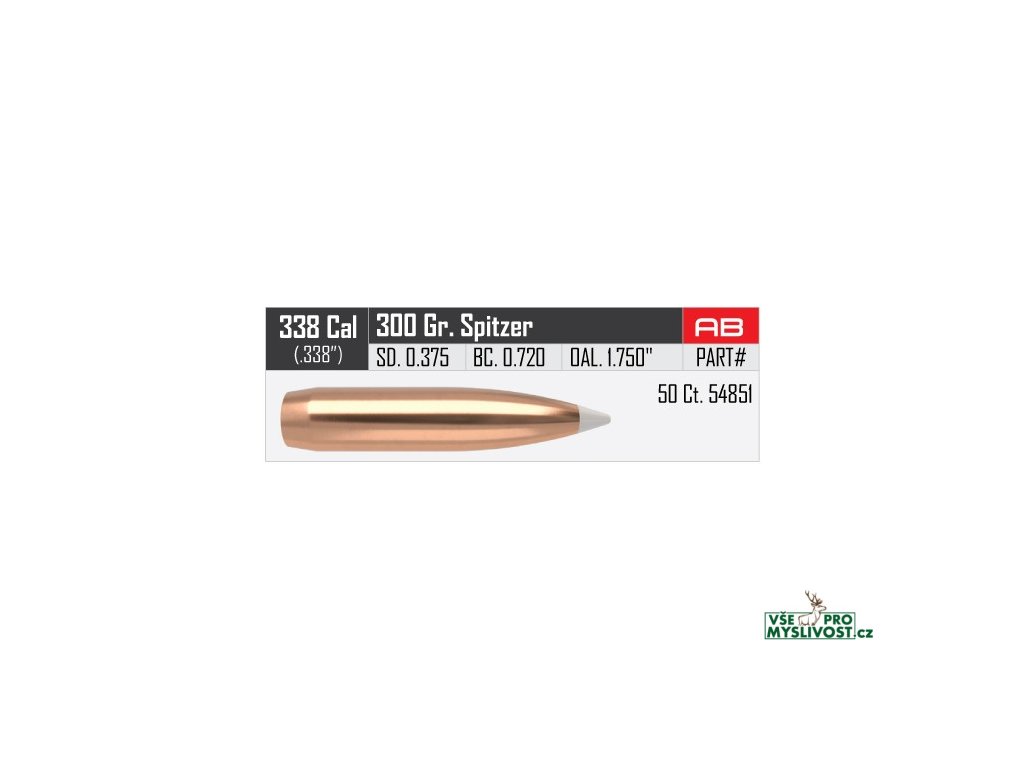 Střely Nosler AccuBond .338 cal, dia .338, 300grs (19,4g). SKU: 54851