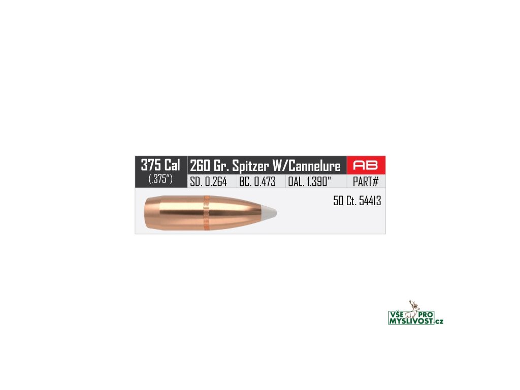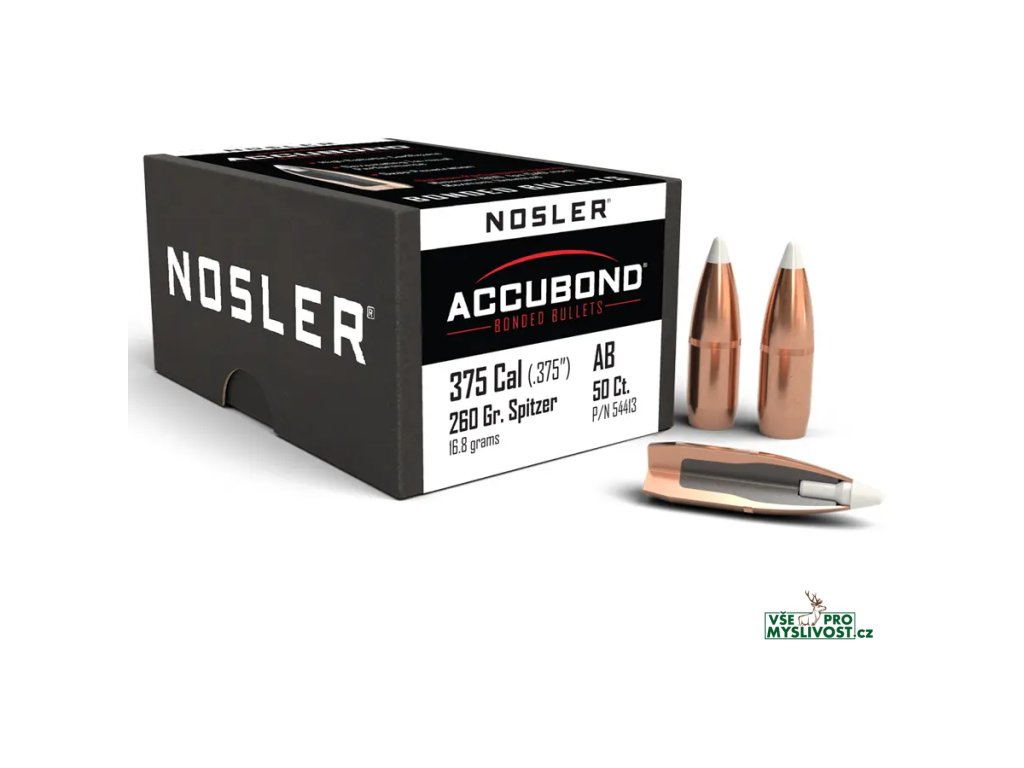 Střely Nosler AccuBond .375 cal, dia .375, 260grs (16,8g). SKU: 54413