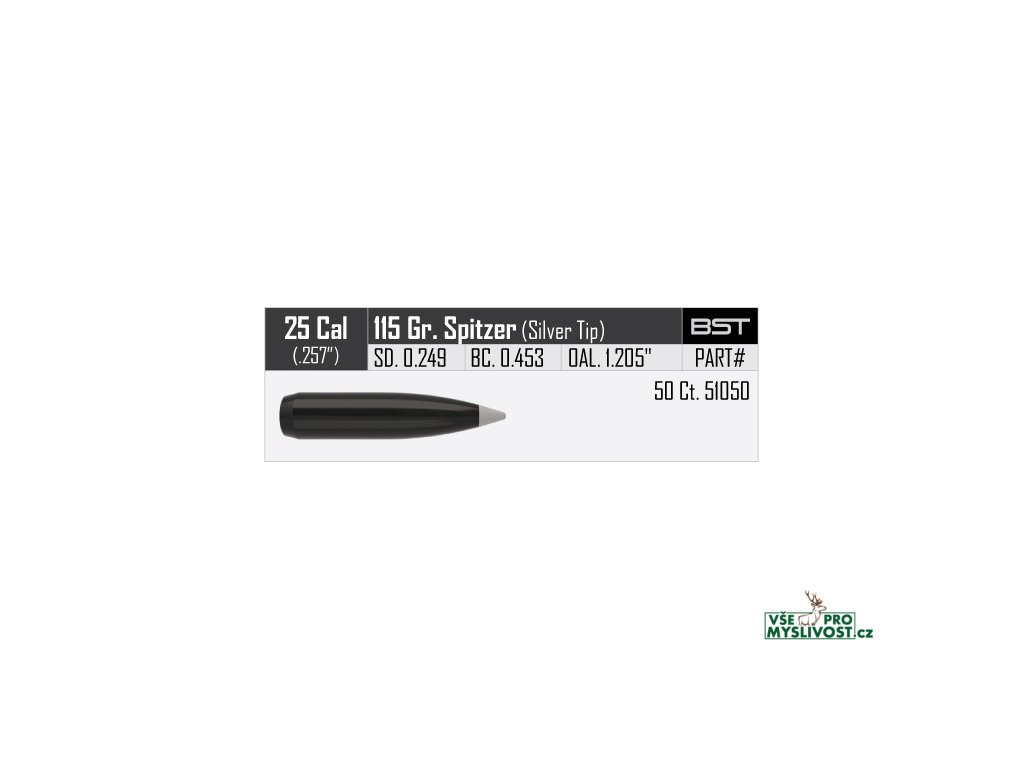 Střely Nosler Ballistic Silvertip .25 cal, dia .257, 115grs (7,4g). SKU: 51050