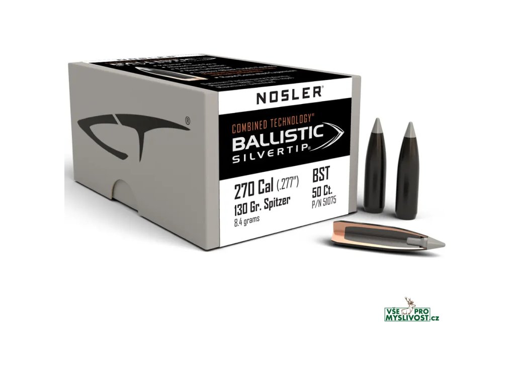Střely Nosler Ballistic Silvertip .270 cal, dia .277, 130grs (8,4g). SKU: 51075