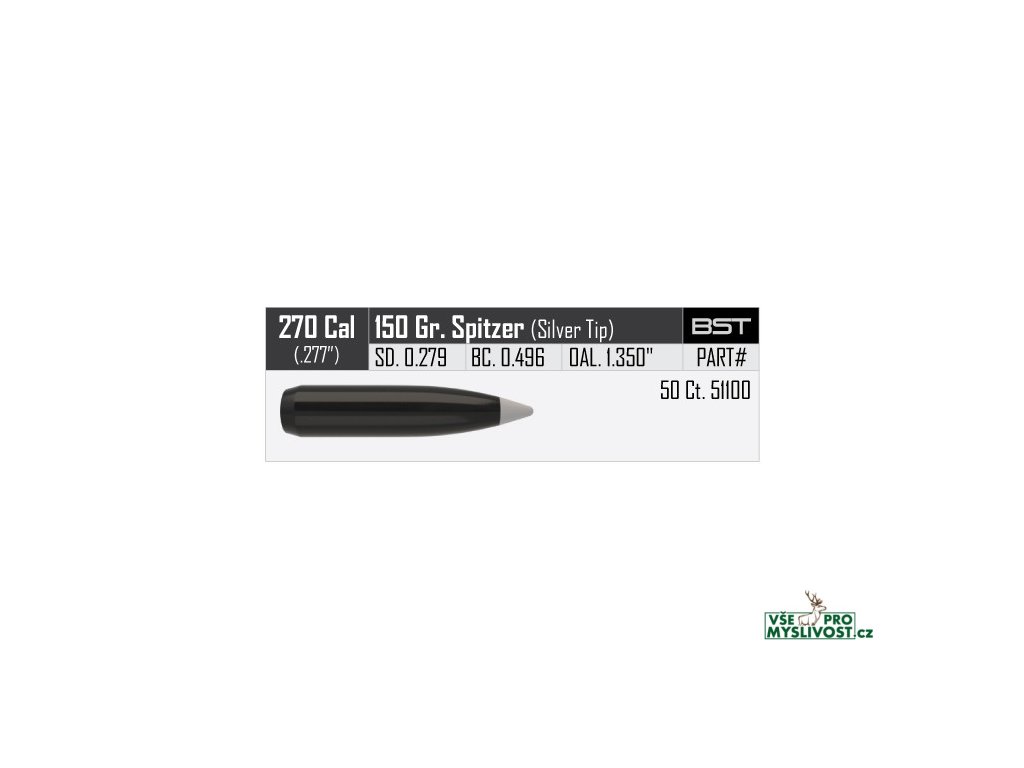 Střely Nosler Ballistic Silvertip .270 cal, dia .277, 150grs (9,7g). SKU: 51100