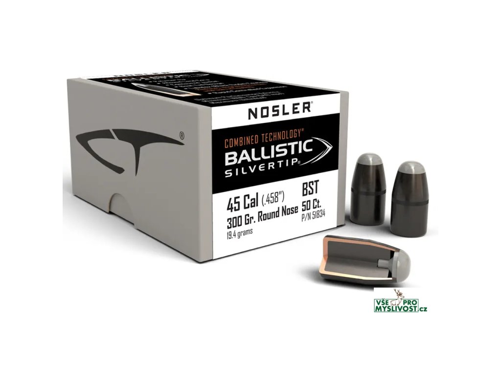 Střely Nosler Ballistic Silvertip .45-70 Gov't, dia .458, 300grs (19,4g). SKU: 51834