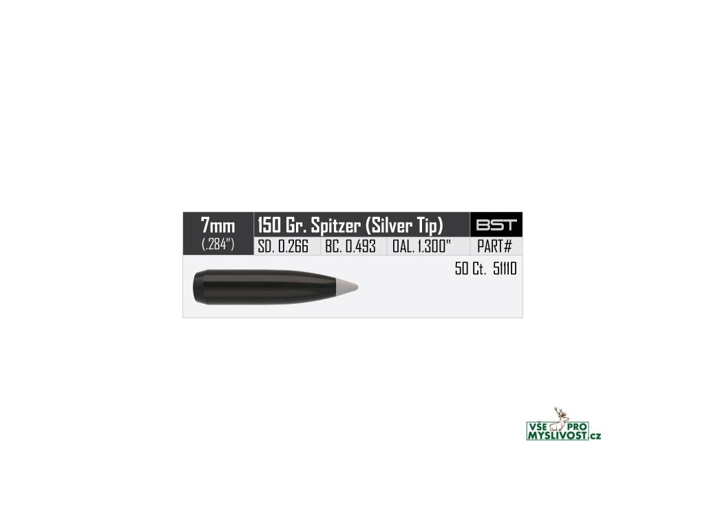 Střely Nosler Ballistic Silvertip 7mm, dia .284, 150grs (9,7g). SKU: 51110