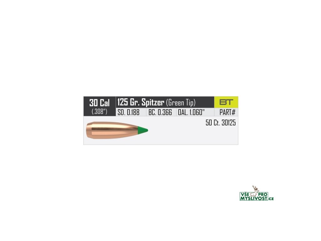 Střely Nosler Ballistic Tip Hunting .30 cal, dia .308, 125grs (8g). SKU: 30125