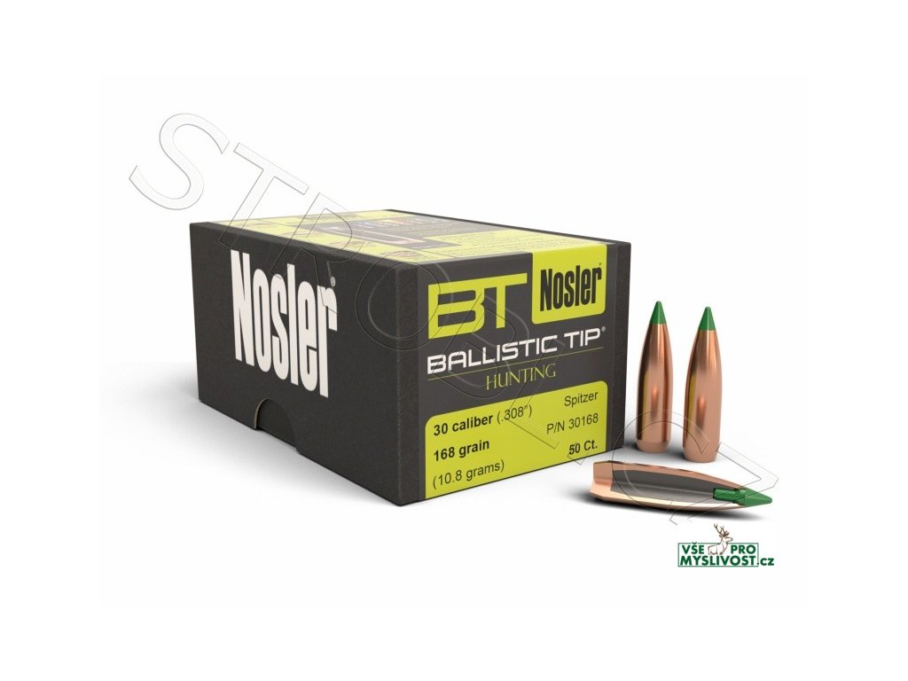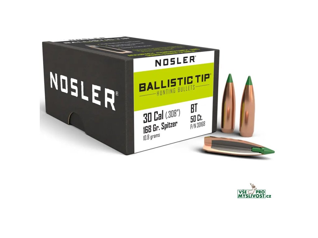 Střely Nosler Ballistic Tip Hunting .30 cal, dia .308, 168grs (10,8g). SKU: 30168