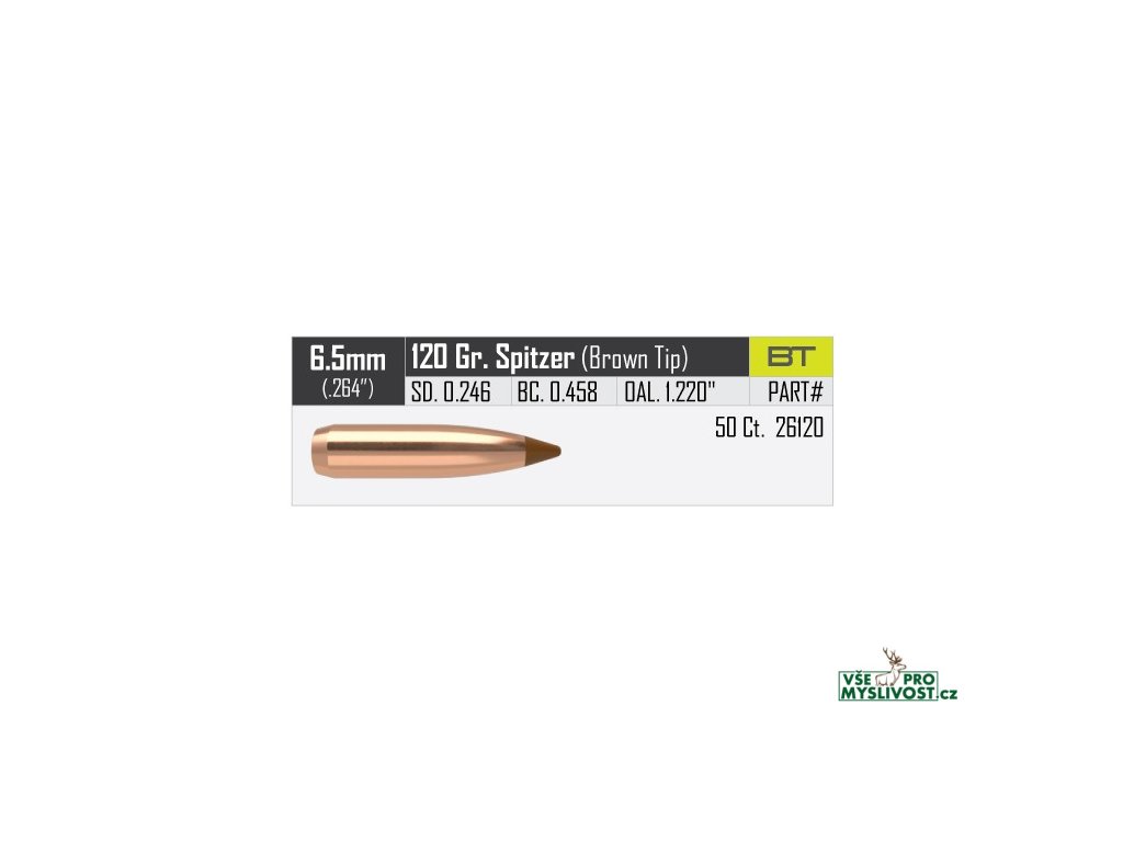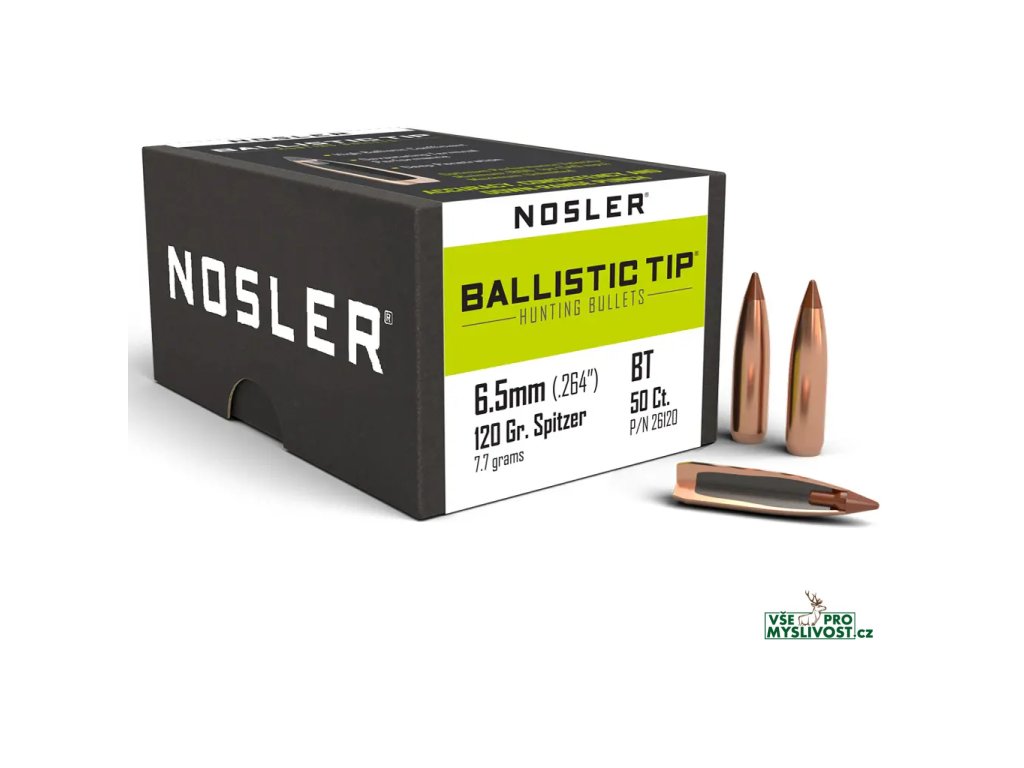 Střely Nosler Ballistic Tip Hunting 6,5mm, dia .264, 120grs (7,7g). SKU: 26120