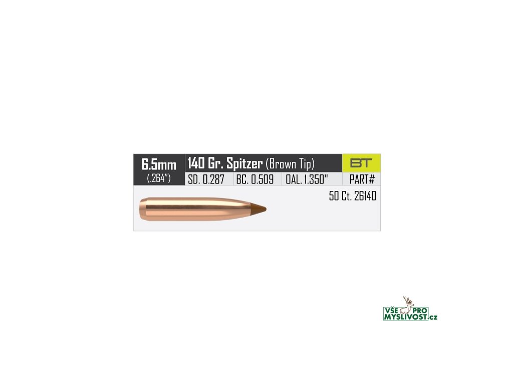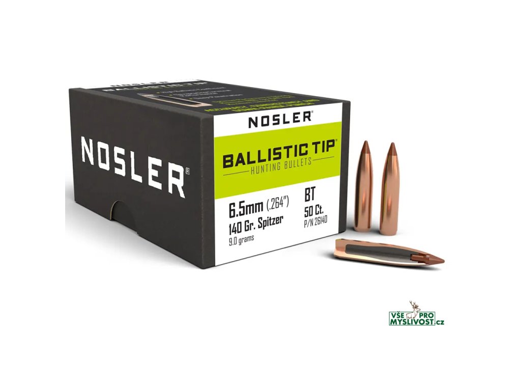 Střely Nosler Ballistic Tip Hunting 6,5mm, dia .264, 140grs (9g). SKU: 26140
