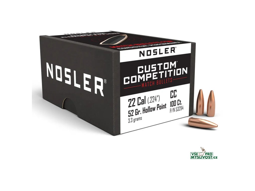 Střely Nosler Custom Competition .22 cal, dia .224, 52grs (3,3g). SKU: 53294