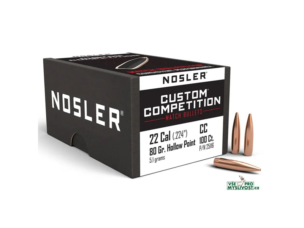 Střely Nosler Custom Competition .22 cal, dia .224, 80grs (5,1g). SKU: 25116
