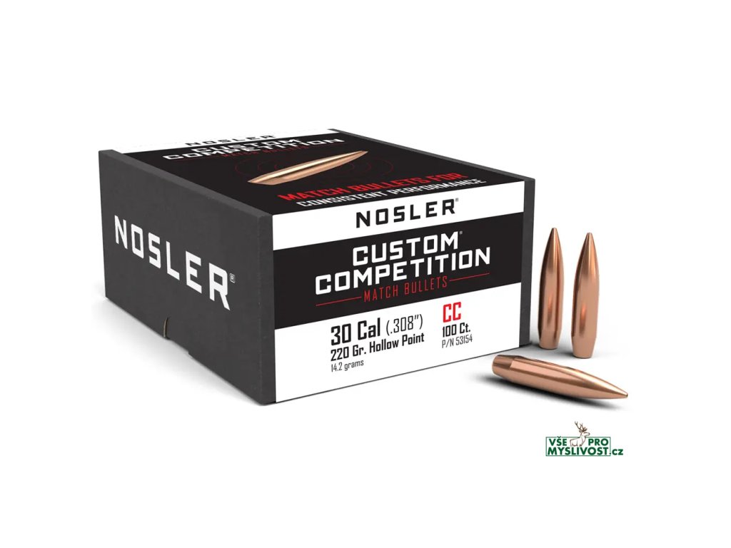 Střely Nosler Custom Competition .30 cal, dia .308, 220grs (14,2g). SKU: 53154