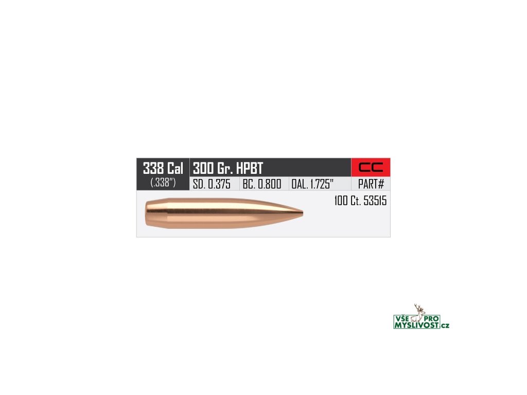 Střely Nosler Custom Competition .338 cal, dia .338, 300grs (19,4g). SKU: 53515