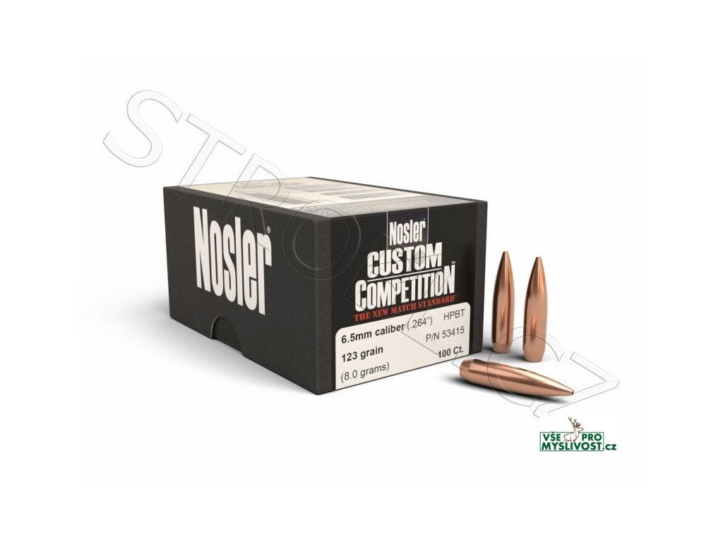 Střely Nosler Custom Competition 6,5mm, dia .264, 123grs (8g). SKU: 53415