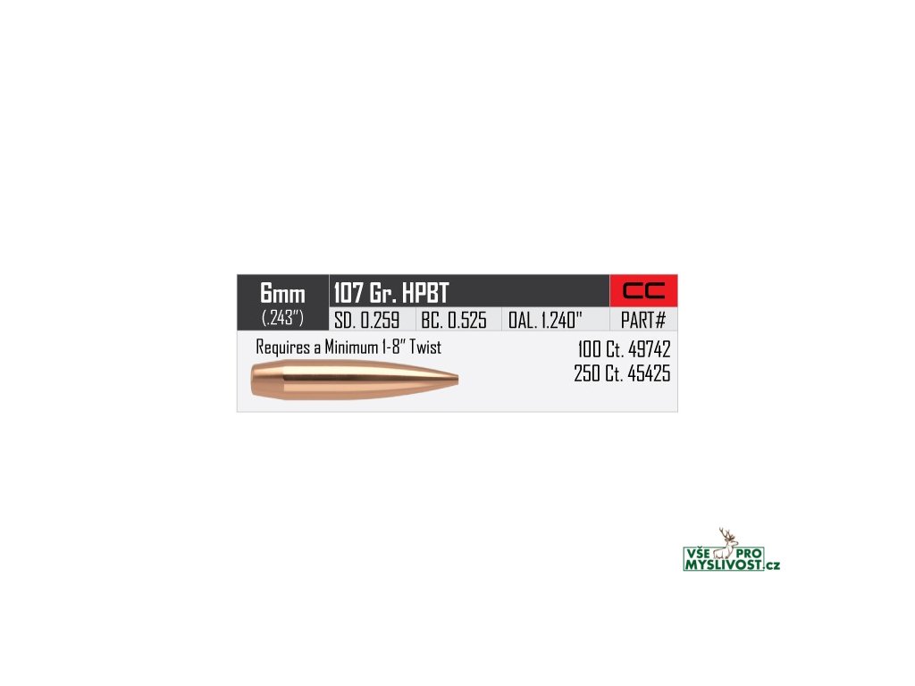 Střely Nosler Custom Competition 6mm, dia .243, 107grs (7g). SKU: 49742