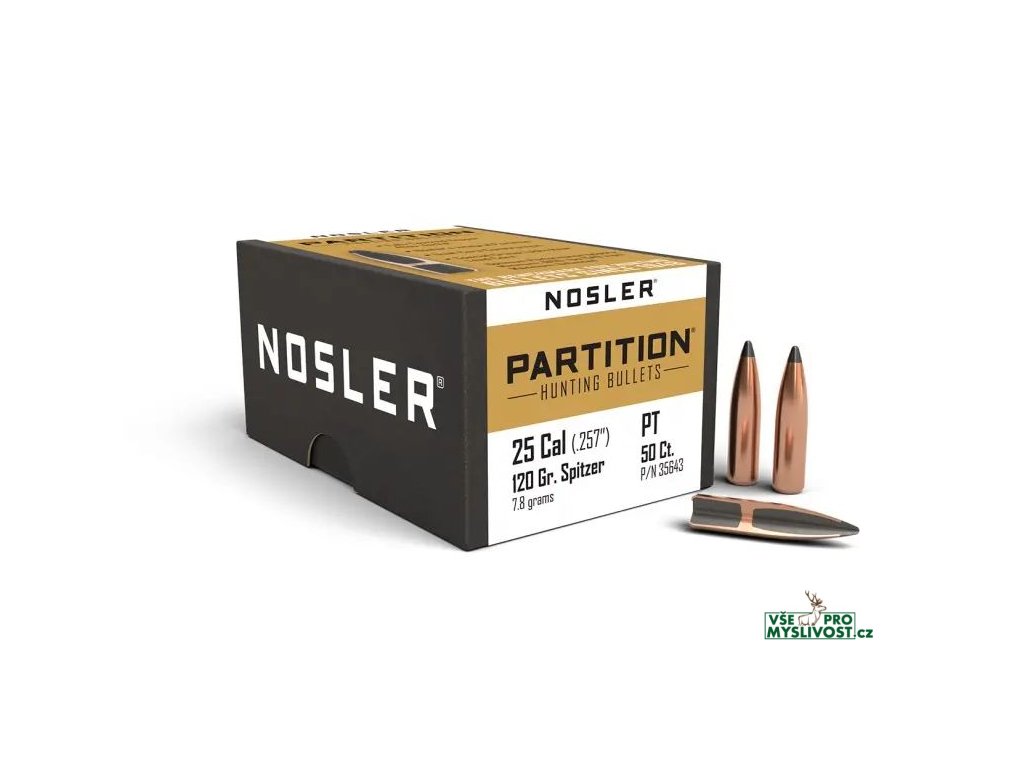 Střely Nosler Partition .25 cal, dia .257, 120grs (7,8g). SKU: 35643