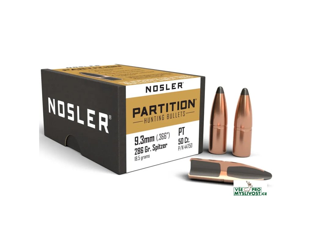 Střely Nosler Partition 9,3mm, dia .366, 286grs (18,5g). SKU: 44750