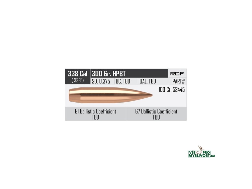 Střely Nosler Reduced Drag Factor (RDF) .338 cal, dia .338, 300grs (19,4g). SKU: 53445