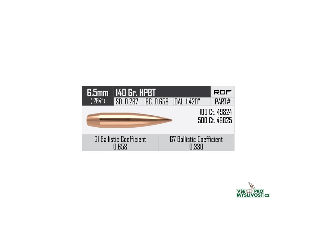 Výhodné balení střel Nosler Reduced Drag Factor (RDF) 6,5mm, dia .264, 140grs (9g). SKU: 49825