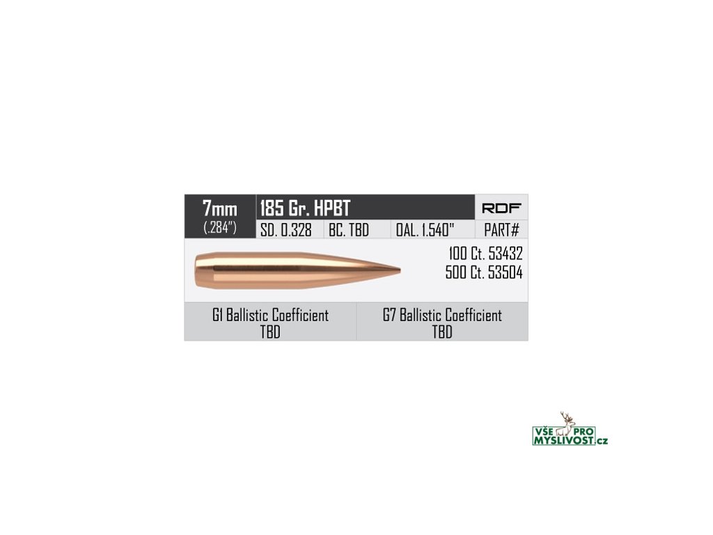 Střely Nosler Reduced Drag Factor (RDF) 7mm, dia .284, 185grs (11,9g). SKU: 53432