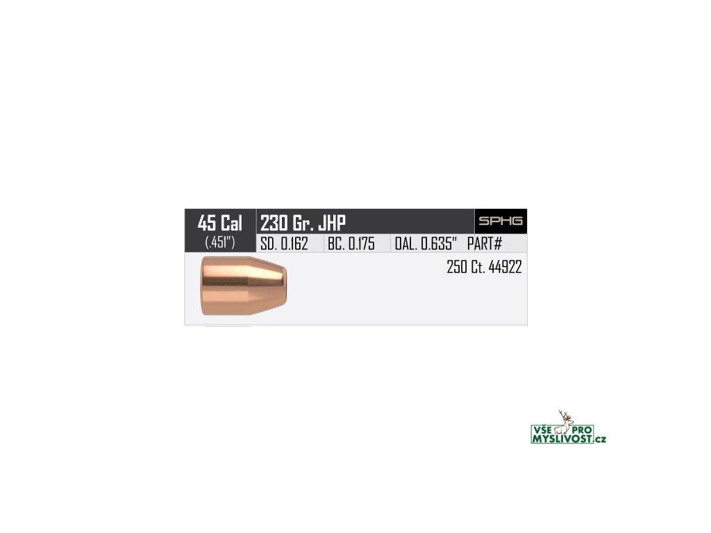 Střely Nosler Sporting Handgun .45 cal, dia .451, 230grs (14,9g). SKU: 44922