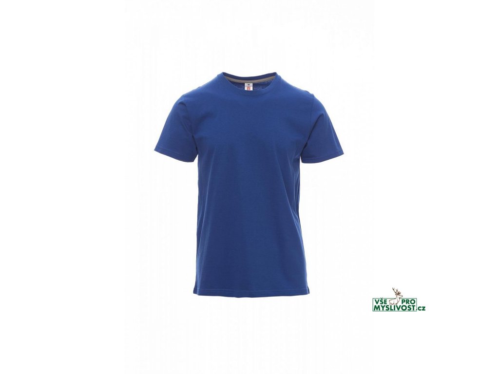 Pánské tričko s krátkým rukávem a kulatým výstřihem, 1,5 cm pružný žebrovaný lem ze směsi spandex u krku s vrchním prošíváním na přední straně, barevně kontrastní vyztužovací páska od ramene k rameni viditelná na límečku, pružné švy, postranní sešití.
